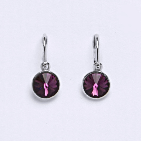 Tyto šperky - dětské náušnice kombinují klasické zapínání s moderním krystalem Swarovski Ametyst - fialová. Orientační váha 1,10 g. Zlato 14 ct 585/1000. Velikost náušnice na výšku je 14 mm.
