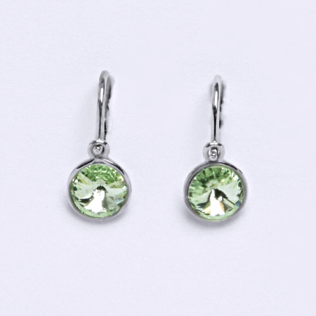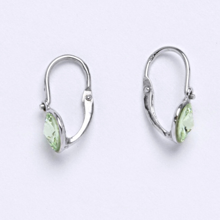 Tyto šperky - dětské náušnice kombinují klasické zapínání s moderním krystalem Swarovski Chryzolit - zelená. Orientační váha 1,10 g. Zlato 14 ct 585/1000. Velikost náušnice na výšku je 14 mm.