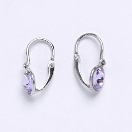 Tyto šperky - dětské náušnice kombinují klasické zapínání s moderním krystalem Swarovski Violet - fialová. Orientační váha 1,10 g. Zlato 14 ct 585/1000. Velikost náušnice na výšku je 14 mm.