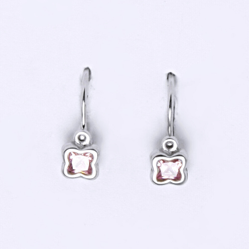 Dětské náušnice bílé zlato s růžovým kamínkem, kytičky. Celková velikost náušnice je 14 mm. Orientační váha náušnic je 0,89 g.Hmotnost drahého kovu u tohoto zboží je nižší než 0,5 g za 1 kus ( 1 gram u 1 páru ), a proto je opuncováno rizostní značkou nebo popřípadě značkou výrobce.