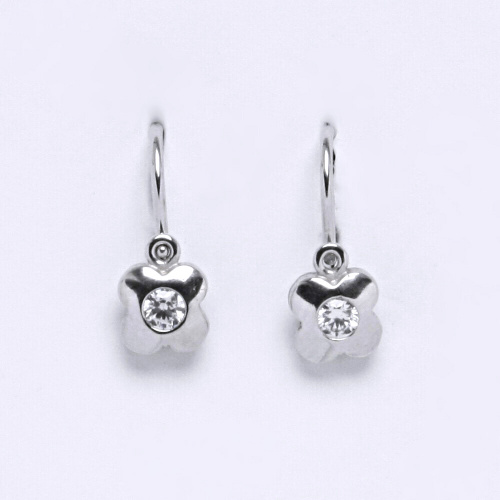 Dětské náušnice bílé zlato s bílým kamínkem, kytičky. Celková velikost náušnice je 14 mm. Orientační váha náušnic je 1,07 g.