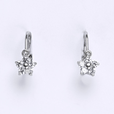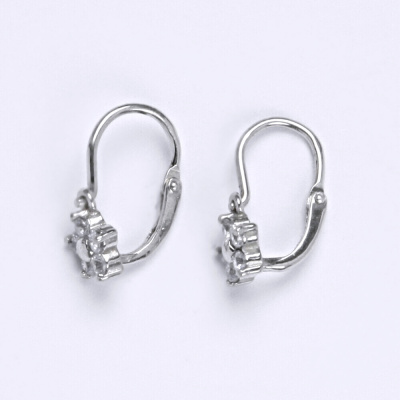 Dětské náušnice z bílého zlata se zirkonem. Celková výška náušnice je 13 mm. Materiál je zlato 585/1000. Orientační váha páru dětských náušnic je 1,03 g.