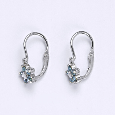 Dětské náušnice z bílého zlata se Swarovski krystalem. Celková výška náušnice je 13 mm. Materiál je zlato 585/1000. Orientační váha páru dětských náušnic je 1,03 g.