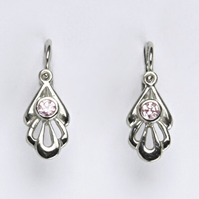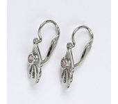 Náušničky jsou vyrobeny z bílého zlata 14 karátů 585/1000, zdobeny syntetickým růžovým zirkonem. Zapínání na náušničkách je klasické dětské zapínání na patent. Celková velikost náušnice je 18 mm.