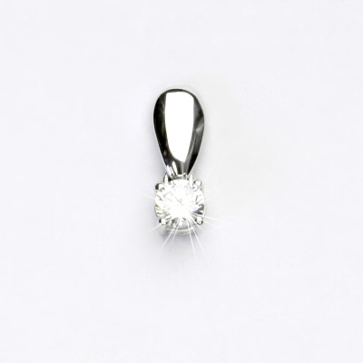 Přívěsek z bílého zlata je zdoben čirým zirkonem o průměru 4 mm. Materiál je zlato 585/1000. Orientační váha přívěsku je 0,82 g. Rozměr přívěsku je 12 mm včetně úchytu na výšku a 4 mm na šířku.