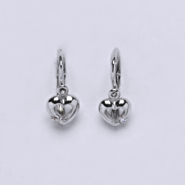 Náušnice ve tvaru srdíčka jsou zdobeny čirým zirkonem. Celková výška náušnice je 13 mm. Orientační váha 0,85 g.