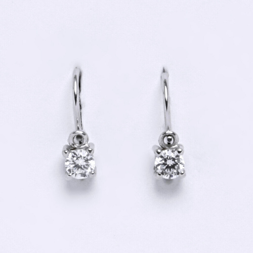 Dětské náušnice bílé zlato s bílým kamínkem, čtverečky. Celková velikost náušnice je 14 mm. Orientační váha náušnic je 1,01 g.