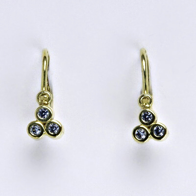 Náušnice jsou vyrobeny ze žlutého zlata 14 karátů 585/1000, jsou zdobeny syntetickým akvamarínem. Zapínání na náušnicích je klasické dětské zapínání. Celková velikost náušničky je 14 mm.
