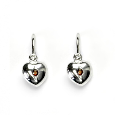 Dětské náušnice mají tvar srdíčka a jsou zdobeny příroním granátem. Materiál náušnic je zlato 585/1000. Celková výška náušnice je 14 mm. Orientační váha náušnic je 1,10 g. Rozměr srdíčka je 6x7 mm.