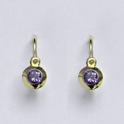 Zlaté dětské náušničky se syntetickým zirkonem na klasické zapínání. Průměr syntetického zirkonu je 3 mm. Výška náušnice je 14 mm. Orientační váha náušnic je 0,78 g. Materiál je žluté zlato 14 karátů 585/1000.