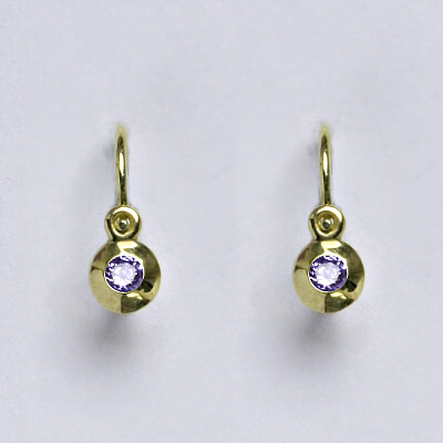 Zlaté dětské náušničky se syntetickým zirkonem na klasické zapínání. Průměr syntetického zirkonu je 2 mm. Výška náušnice je 13 mm. Orientační váha náušnic je 0,74 g. Materiál je žluté zlato 14 karátů 585/1000.