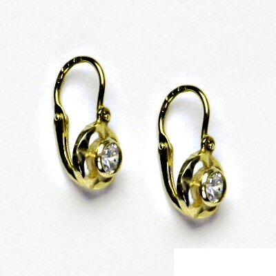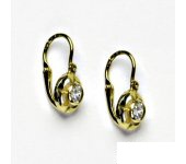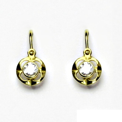 Zlaté dětské náušnice jsou zdobeny čirým zirkonem. Materiál je zlato 585/1000. Celkový rozměr náušnice na výšku je 15 mm. Rozměr zdobné části je 7,5x7,5 mm. Náušnice mají zapínání na brizuru. Orientační váha náušnic je 1,30 g.
