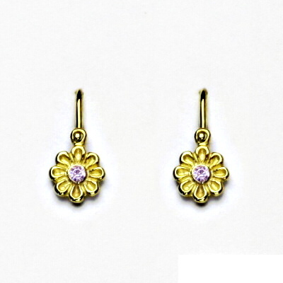 Zlaté dětské náušnice mají tvar kytičky jsou zdobeny růžovým zirkonem. Materiál je zlato 585/1000. Celkový rozměr náušnice na výšku je 14 mm. Rozměr kytičky je 6x6 mm. Náušnice mají zapínání na brizuru.