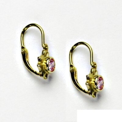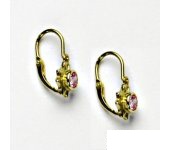 Dětské náušnice jsou zdobeny růžovým zikonem o průměru 3,5 mm a jsou vyrobeny ze žlutého zlata. Materiál je zlato 925/1000. Zapínání náušnic je na brizuru. Celková výška nášunice je 19 mm. Rozměr zdobné části je 7,5 mm. Orientační váha náušnic je 1,32&