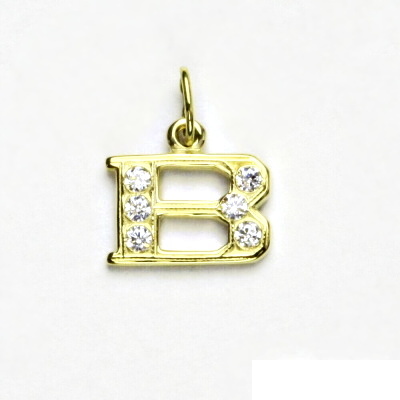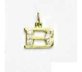 Zlatý přívěsek písmenko B je zdobeno čirými zirkony. Materiál je zlato 585/1000. Rozměr přívěsku je 16 mm včetně očka a 13 mm na šířku. Orientační váha přívěsku je 1,26 g.