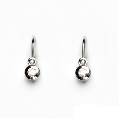 Dětské náušnice z bílého zlata jsou zdobeny růžovým zirkonem. Průměr zdobné části je 4 mm. Celková výška náušnice je 12 mm. Náušnice mají dětské zapínání. Materiál je zlato 585/1000. Orientační váha náušnic je 0,78 g.