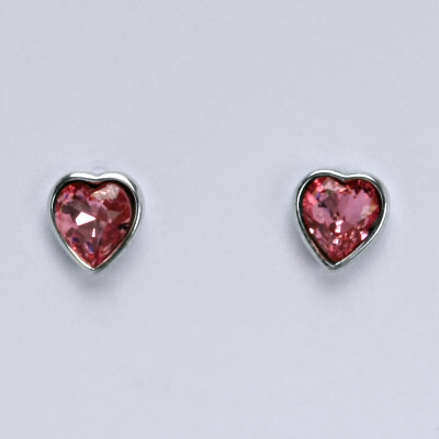 Zlaté náušnice z bílého zlata se Swarovski krystaly light rose ve tvaru srdce se zapínáním na šroubek. Velikost krystalu je 6 mm. Materiál je zlato 585/1000 ( 14 karátů ). Náušnice mají povrchovou úpravu čisté rhodium.