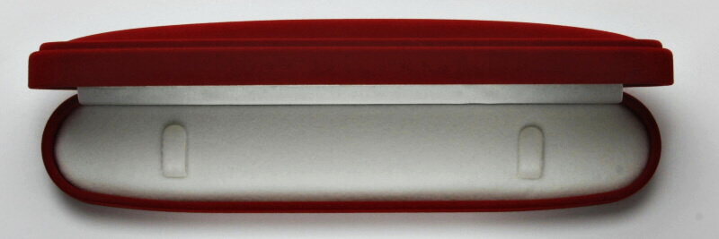 Elegantní sametová krabička červené barvy. Krabička je vhodná na náramek. Rozměr krabičky je 220x44x35 mm.