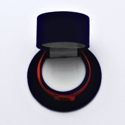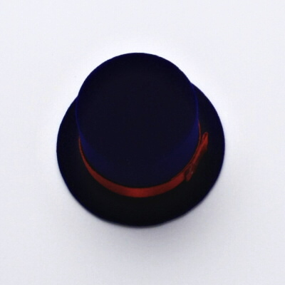 Modrá sametová krabička ve tvaru klobouku. Krabička je vhodná na náušnice nebo prsten. Rozměry krabičky jsou: 60x37 mm.
