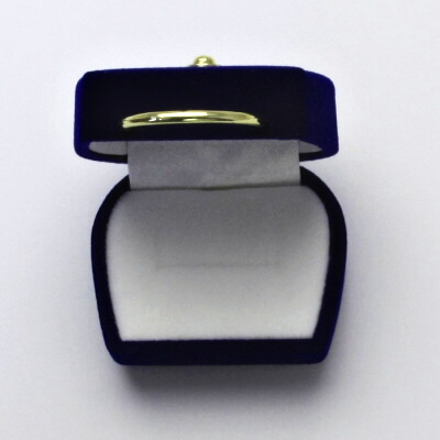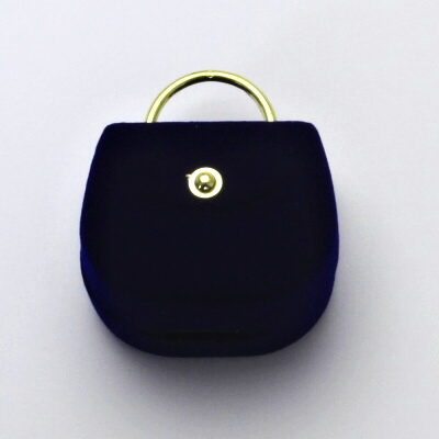 Modrá sametová krabička na šperky ve tvaru kabelky. Krabička je vhodná na prsten nebo náušnice. Rozměry kabelky jsou:40x50x30 mm.