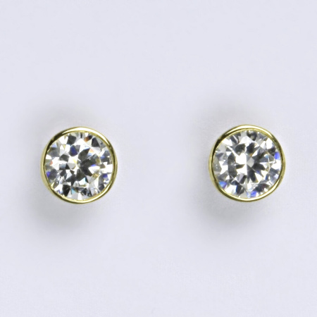 Náušnice ze žlutého zlata 14 karátů 585/1000 s čirým zirkonem. Velikost zirkonu je 6 mm. Náušnice mají zapínání na šroubek. Orientační váha je 2,10 g.