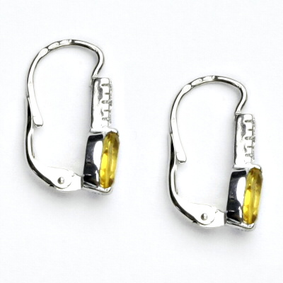 Náušnice z bílého zlata jsou zdobeny čirými zirkony a přírodním citrínem o rozměru 7x5 mm. Materiál je stříbro 925/1000. Orientašní váha náušnic je 2,34 g. Celková výška náušnice je 19 mm. Náušnice mají zapínání na klapku a jsou rhodiované.