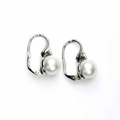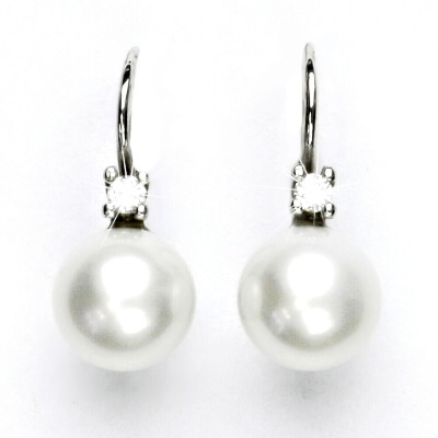 Náušnice z bílého zlata s čirými zirkony a bílými přírodními říčními perlami o průměru 9,5 mm. Materiál je zlato 585/1000. Orientační váha náušnic je 5,57 g.