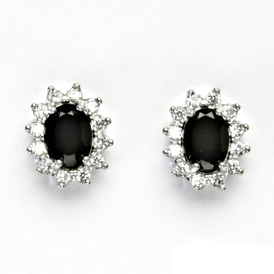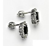 Náušnice z bílého zlata jsou zdobeny malými čirými zirkony a přírodním spinelem 7x5 mm. Materiál je zlato 585/1000. Rozměr náušnice je 11x10 mm. Náušnice mají zapínání na šroubek. Orientační váha náušnic je 3,1 g.