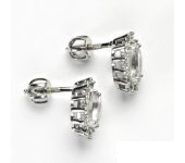 Náušnice z bílého zlata jsou zdobeny malými čirými zirkony a přírodním křišťálem 7x5 mm. Materiál je zlato 585/1000. Rozměr náušnice je 11x10 mm. Náušnice mají zapínání na šroubek. Orientační váha náušnic je 3,1 g.