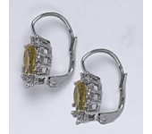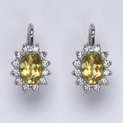 Zlaté náušnice s přírodním citrínem a malými čirými zirkony. Velikost citrínu je 7x5 mm. Materiál je bílé zlato 585/1000. Celková výška náušnice je 18 mm. Zapínání náušnic je na patent. Orientační váha náušnice 3,40 g.