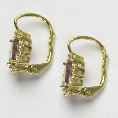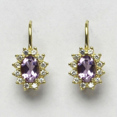 Náušnice jsou vyrobeny ze žlutého zlata. Jsou zdobeny přírodním ametystem světlým o rozměru 7x5 mm a malými čirými zirkony. Celková výška náušnice je 18 mm. Materiál je zlato 585/1000. Orientační váha náušnice 3,40 g.