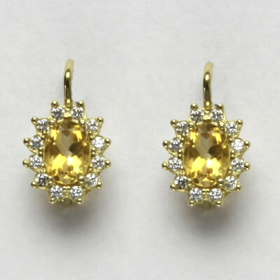 Náušnice jsou vyrobeny ze žlutého zlata. Jsou zdobeny přírodním citrínem o rozměru 7x5 mm a malými čirými zirkony. Celková výška náušnice je 18 mm. Materiál je zlato 585/1000. Orientační váha náušnice 3,40 g.