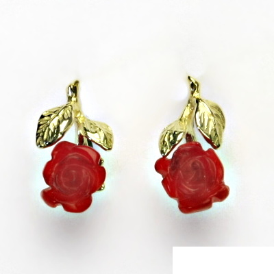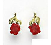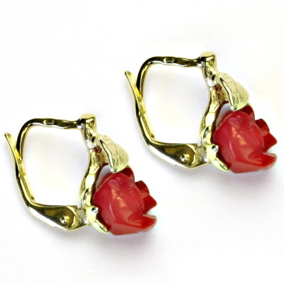 Náušnice ze žlutého zlata jsou zdobeny přírodním korálem ve tvaru růžičky. Korál má červenou barvu a je dobarvovaný. Materiál náušnic je zlato 585/1000. Náušnice mají zapínání na patent. Průměr růžičky je cca 8 mm. Orientační váha náušnic je cca 3 g.&a