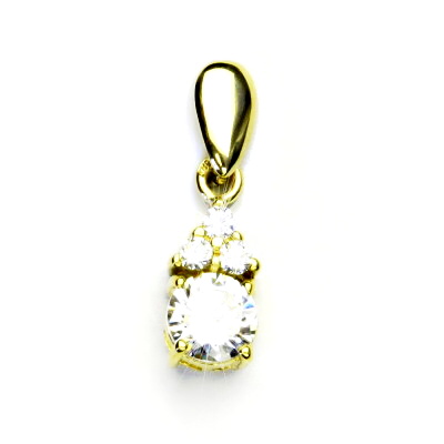 Přívěsek ze žlutého zlata s čirými zirkony. Materiál je zlato 585/1000. Orientační váha přívěsku je 1,56 g. Rozměr přívěsku je 20 mm včetně úchytu na výšku a 6 mm na šířku.