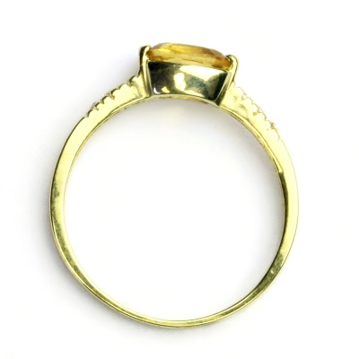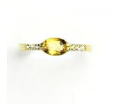 Prstýnek ze žlutého zlata je zdoben malými čirými zirkony o průměru 1,30 mm a přírodním citrínem o rozměru 7x5 mm. Materiál je zlato 585/1000. Orientační váha prstenu ve velikosti 54 je 2,03 g. Prstýnek nabízíme v různých velikostech.