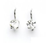 Náušnice z bílého zlata s čirými zirkony ve tvaru srdíčka o rozměru 6x6 mm. Materiál je zlato 585/1000. Náušnice mají zapínání na klapku. Orientační váha je 2,47 g. Celková výška náušnice je 14 mm.