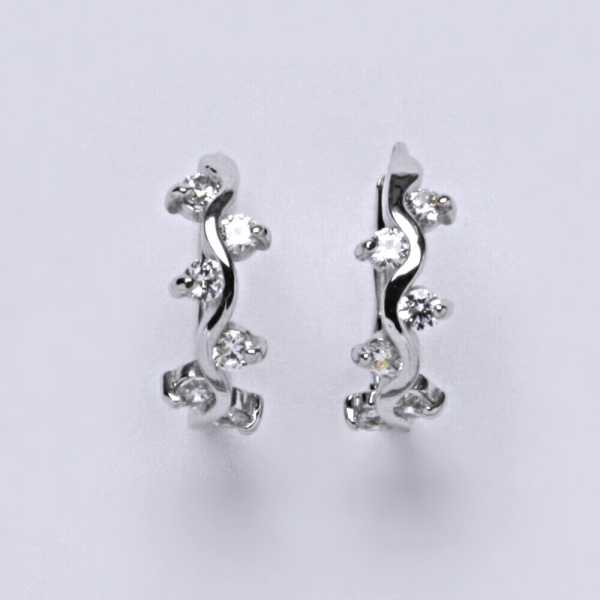 Naušnice z bílého zlata 585/1000. Použité zirkony velikosti 2,25 mm. Celková velikost na výšku cca 16 mm. Orientační váha cca 2,7 g.