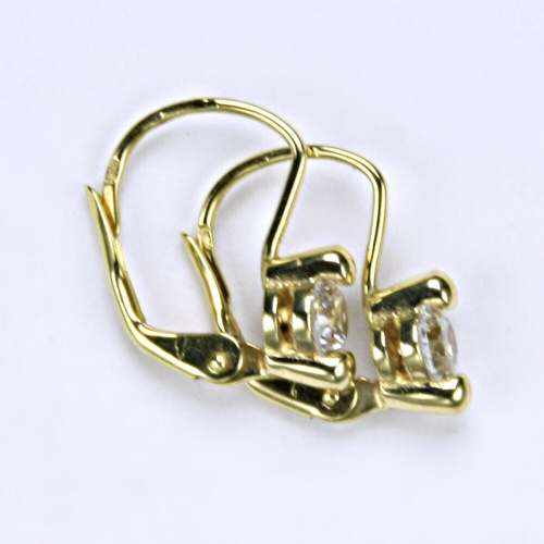 Velikost náušnice celkem 16 mm, orientační váha 2,15 g, velikost zirkonu 4,5 mm. Materiál zlato 585/1000.