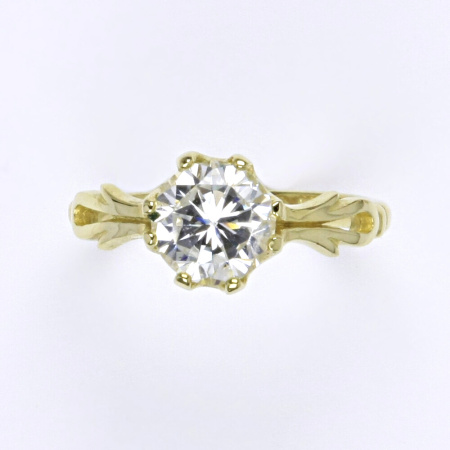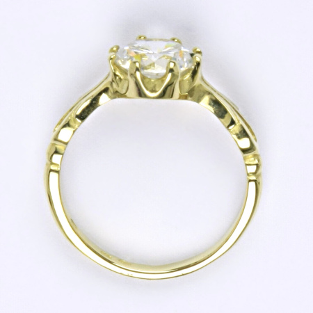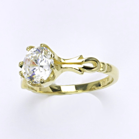 Zlatý prsten ze žlutého zlata s čirým zirkonem. Velikost zirkonu je 8 mm. Orientační váha prstenu je 3,85 g.