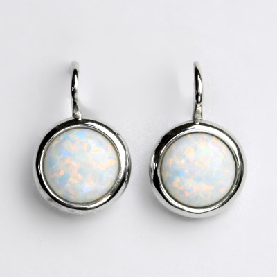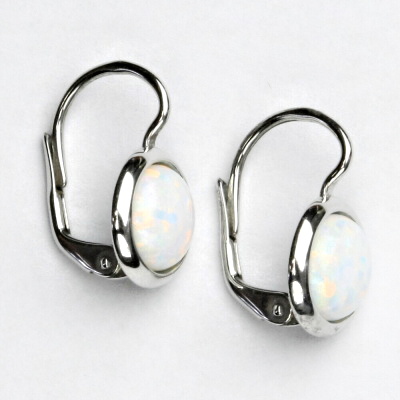 Náušnice z bílého zlata jsou zdobeny tmavě modrým syntetickým opálem o průměru 8 mm. Materiál je zlato 585/1000. Orientační váha náušnic je 2,96 g. Celková výška náušnice je 18 mm.