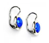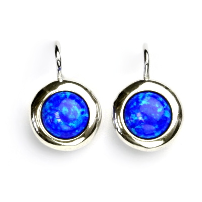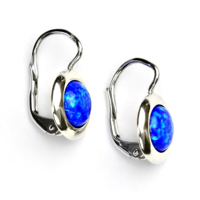 Náušnice z bílého zlata jsou zdobeny tmavě modrým syntetickým opálem o průměru 7 mm. Materiál je zlato 585/1000. Orientační váha náušnic je 2,78 g. Celková výška náušnice je 17 mm.