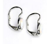 Náušnice z bílého zlata jsou zdobeny syntetickým opálem o rozměru 7x5 mm. Materiál je zlato 585/1000. Orientační váha náušnic je 2,79 g. Náušnice mají zapínání na klapku. Celková výška náunice je 17 mm.