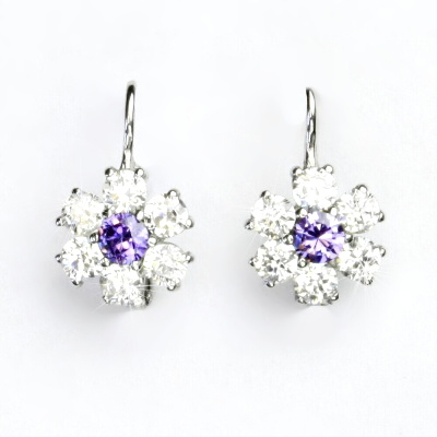 Použité kameny: čiré zirkony: 12 ks x 3 mm, zirkony ametyst: 2 ks x 3,5 mm.