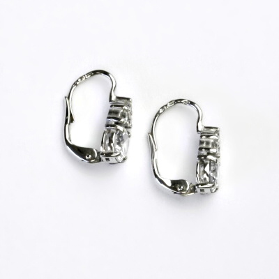 Náušnice z bílého zlata s čirými zirkony. Materiál je zlato 585/1000. Orientační váha náušnic je 3,21 g. Celková výška náušnice je 16 mm. Náušnice mají zapínání na klapku.