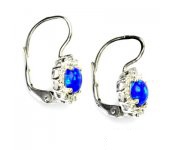 Dámské náušnice z bílého zlata jsou zdobeny malými čirými zirkony a tmavě modrým syntetickým opálem o průměru 5,5 mm. Materiál je zlato 585/1000. Náušnice mají zapínání na patent a jsou rhodiované. Orientační váha náušnic je 2,76 g.