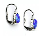 Náušnice z bílého zlata jsou zdobeny fialovým syntetickým opálem o rozměru 8x6 mm. Materiál je zlato 585/1000. Orientační váha náušnice je 3,04 g. Celková výška náušnice je 16 mm.