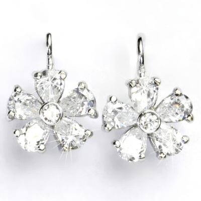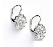 Náušnice z bílého zlata jsou zdobeny čirými zirkony. Materiál je zlato 585/1000. Orientační váhá náušnic je 4,83 g. Náušnice mají zapínání na klapku a jsou rhodiované. Celková výška náušnice je 19 mm. Průměr kytičky je 12 mm.