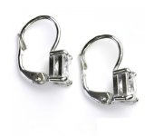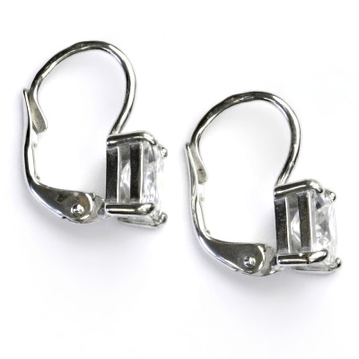 Náušnice z bílého zlata jsou zdobeny čirými zirkony o rozměru 6x6 mm. Materiál je zlato 585/1000. Orientační váha náušnic je 2,80 g. Náušnice mají zapínání na klapku a jsou rhodiované. Celková výška náušnice je 15 mm.