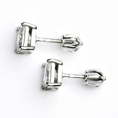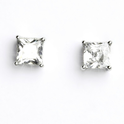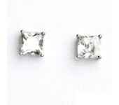 Náušnice z bílého zlata jsou zdobeny čirým zirkonem o rozměru 6x6 mm. Materiál je zlato 585/1000. Orientační váha náušnic je 2,76 g. Náušnice mají zapínání na šroubek a jsou rhodiované.
