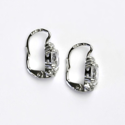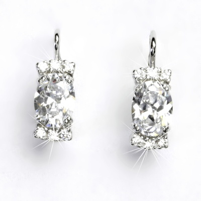 Náušnice z bílého zlata s čirými zirkony. Materiál je zlato 585/1000. Orientační váha náušnic je 3,52 g. Celková výška náušnice je 17 mm. Náušnice mají zapínání na klapku. Použité čiré zirkony:8 x 6 mm 2 ks a zirkon :1,5 mm 12 ks.